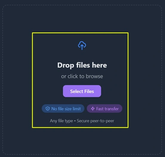 Yes. Transfers use WebRTC with end-to-end encryption. Files go directly from sender to receiver and are never stored on our servers. It is legal for sharing content you own.